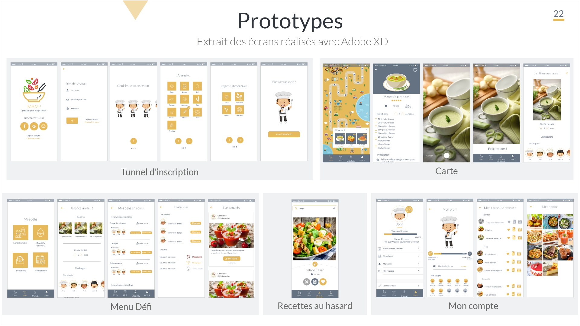 MAM ! est une application culinaire qui allie jeu et livre de recettes. Son but est de redonner de l’inspiration aux utilisateurs au moment de préparer leurs repas au quotidien. L’idée est que plus on progresse en cuisine, meilleure sera l’inspiration grâce à une meilleure connaissance des techniques et des produits.