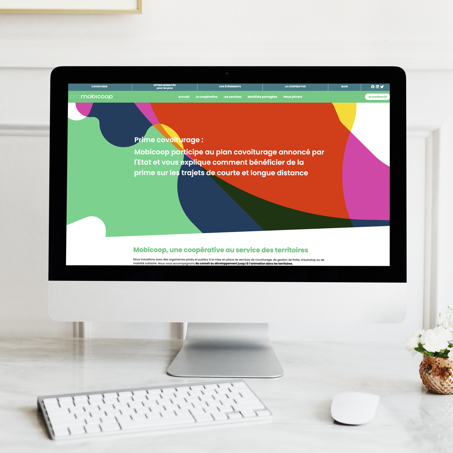 L’enjeu de ce site est à la fois informatif (qui est Mobicoop ?) mais aussi commercial (donner envie aux prospects de contacter le service commercial afin de souscrire aux services de Mobicoop).